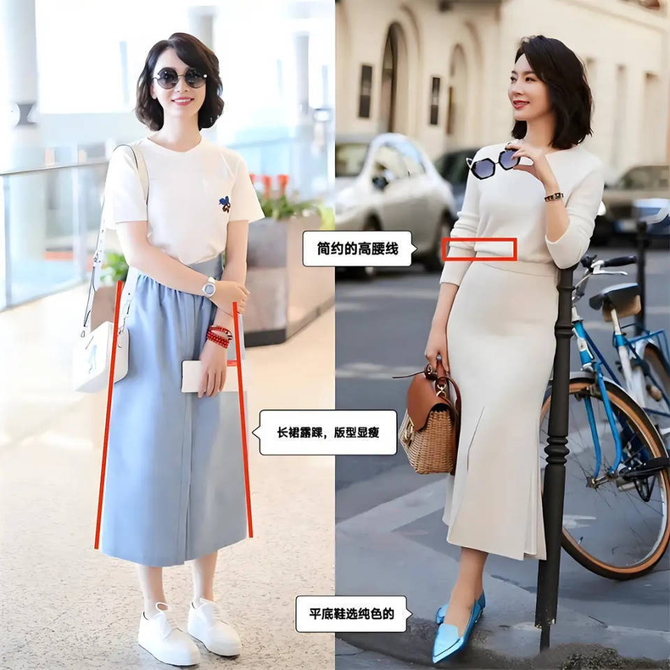 明星陈数的穿衣打扮是有很多地方值得我们借鉴的,比如她选择的裙子基本上是盖过膝盖到小腿肚的位置,这个长度不容易压身高,最主要的是能够遮住下半身的腿部缺陷,比如说胯宽腿粗,穿这样的裙子绝对能完全修饰掉,而且还能让你下半身的身材线条变得更流畅。